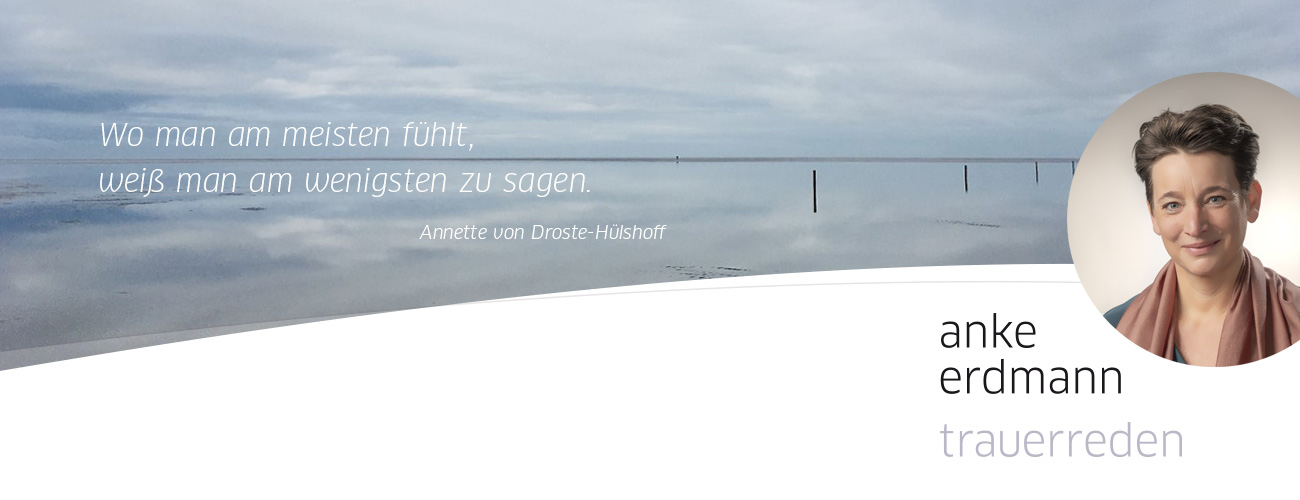 Auf dieser Grundlage entsteht die Trauerrede, individuell und persönlich. Ich bin für Sie da – für die Worte über das was bleibt, wenn ein geliebter Mensch geht. Bei mir sind Sie mit Ihren Erinnerungen gut aufgehoben. Ich gehe diskret und einfühlsam mit dem um, was Sie mir anvertrauen.